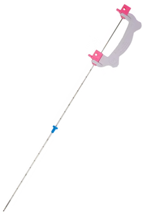 FastCut P besteht außerdem aus einem Mandrin aus Edelstahl AISI 302 mit einer 16°-Bioptikspitze und einer 19,5 mm langen Kerbe. Sperrklinken ermöglichen die Verbindung der Nadel mit der Biopsiepistole, und ein Kunststoffabstandshalter hält Kanüle und Mandrin in der korrekten Position für die Verwendung mit der Pistole.