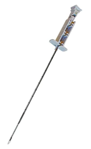 Der Mandrin besitzt eine bioptische Spitze und eine 20 mm lange Probenkerbe zum einfachen Durchdringen und Entnehmen von Bindegewebe.