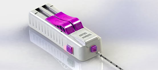 Vollautomatisches Einweggerät zur Kernprobenentnahme von Schaftgeweben und Organen. Eine Guillotine-Typ Nadel mit Probenkerbung, Zentimeter Markierung und echogener Kanüle.